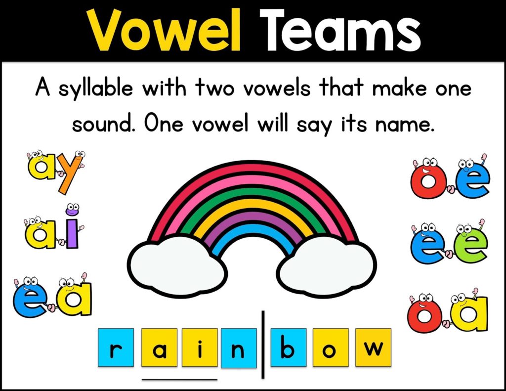 Ee, ea, ey, ei, ie · long i vowel teams: 7 syllable types there are seven syllable types: We use the letter 'y' in vowel teams because english words can't end in 'i'. Vowel sound formed by the combination of two vowel sounds in a syllable. Vowel teams are one of the syllable types.